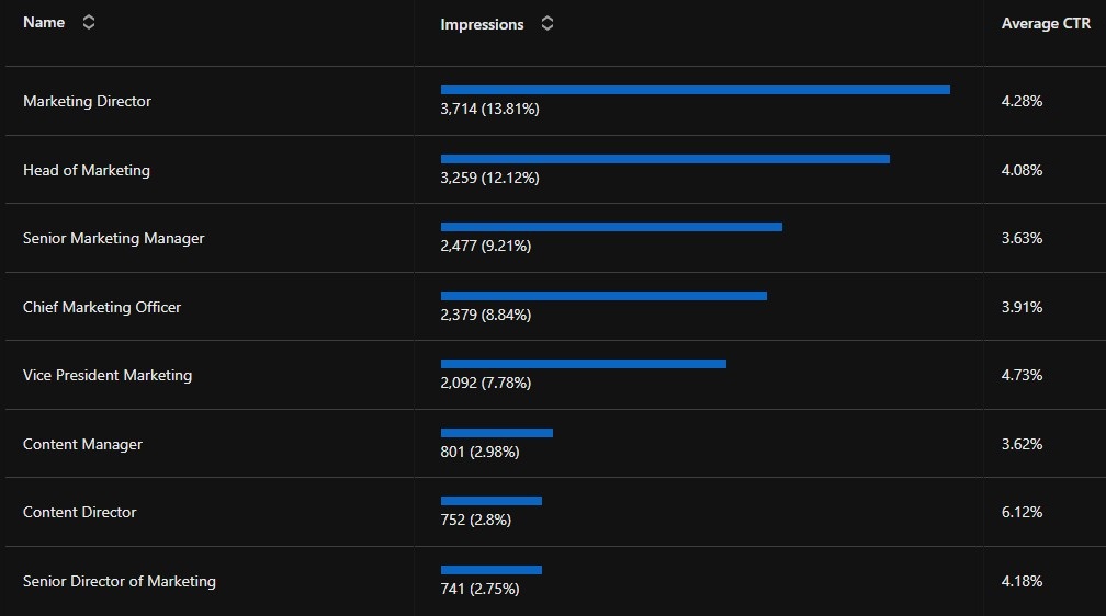 (For reference, our clients often see 5–10% CTRs—well above the LinkedIn brand ad average of 1%) - Dwell times: How long are people engaging with your post?